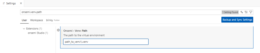 onsemi.venv.pathSet the value to the absolute path of your Python virtual environment folder (e.g.,
